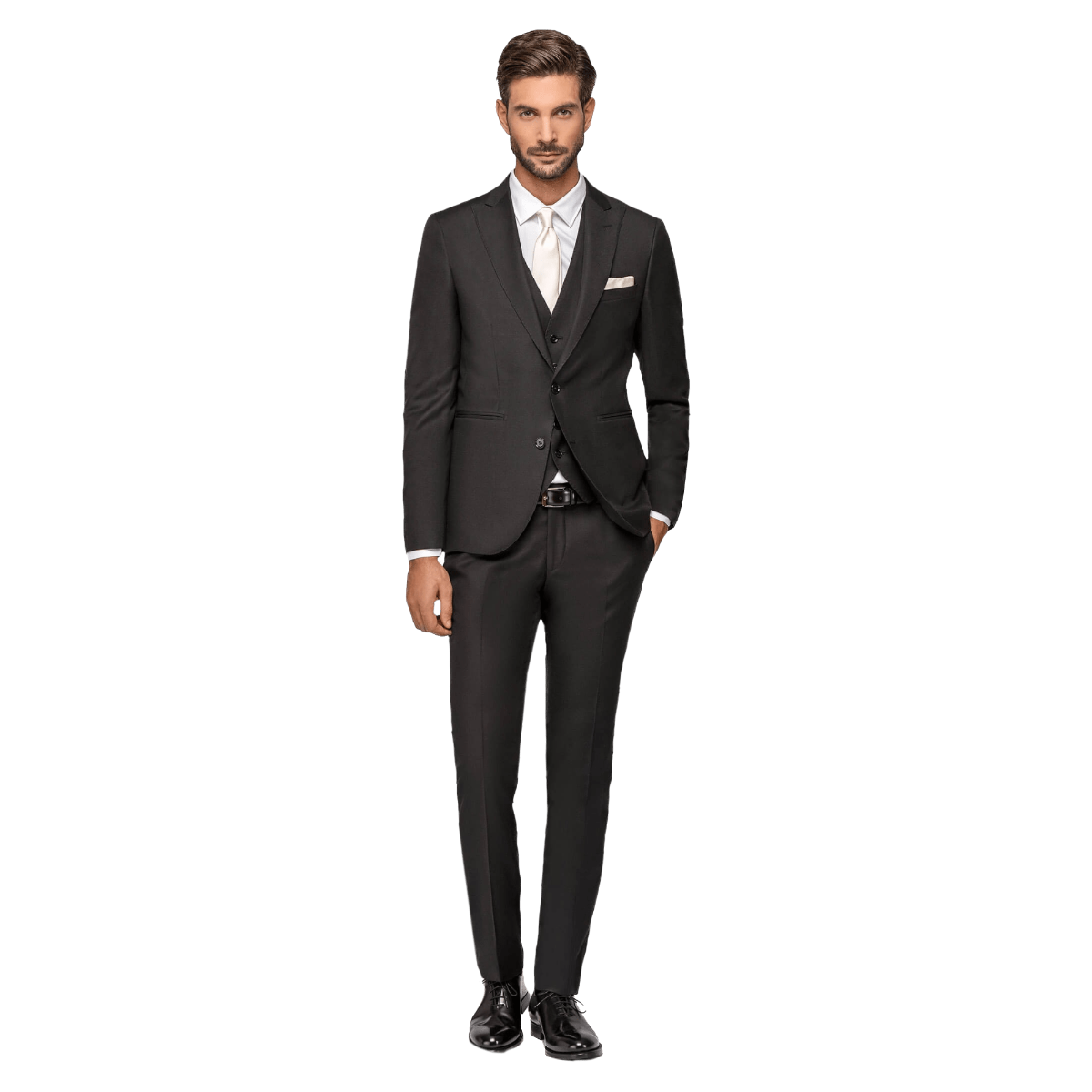 Abito nero tre pezzi da uomo al 100% in lana superfine. Θ un perfetto esempio della visione del marchio sugli abiti formali, rappresentando l'avanguardia della filosofia sartoriale milanese. Il tessuto θ costituito da selezionati filati di lana super 130 di Guabello e fa parte di una serie di completi uomo 4 stagioni perfetti per essere indossati tutto l'anno. Offre un'eccellente vestibilitΰ, irradiando un fascino dominante e senza tempo in ogni occasione.