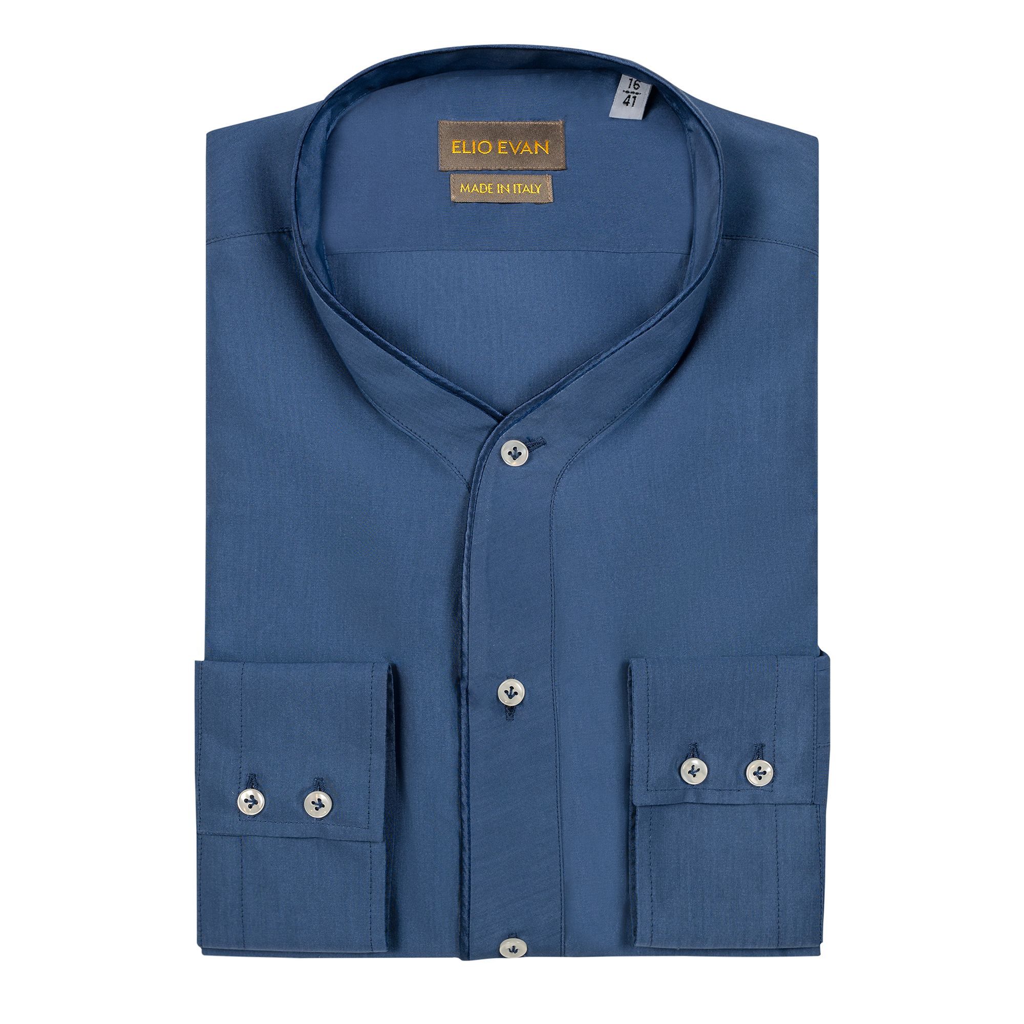 Questa camicia blu firmata Elio Evan è confezionata in Italia con un pregiato blend di cotone e seta, che le conferisce lucentezza naturale e comfort leggero. Il modello Nice include collo coreano stondato con profilo in raso, polsi squadrati con doppio bottone e fondo leggermente arrotondato per uno stile fluido e versatile. Le cuciture sartoriali ad ago singolo e i bottoni in madreperla completano questo capo sofisticato.
