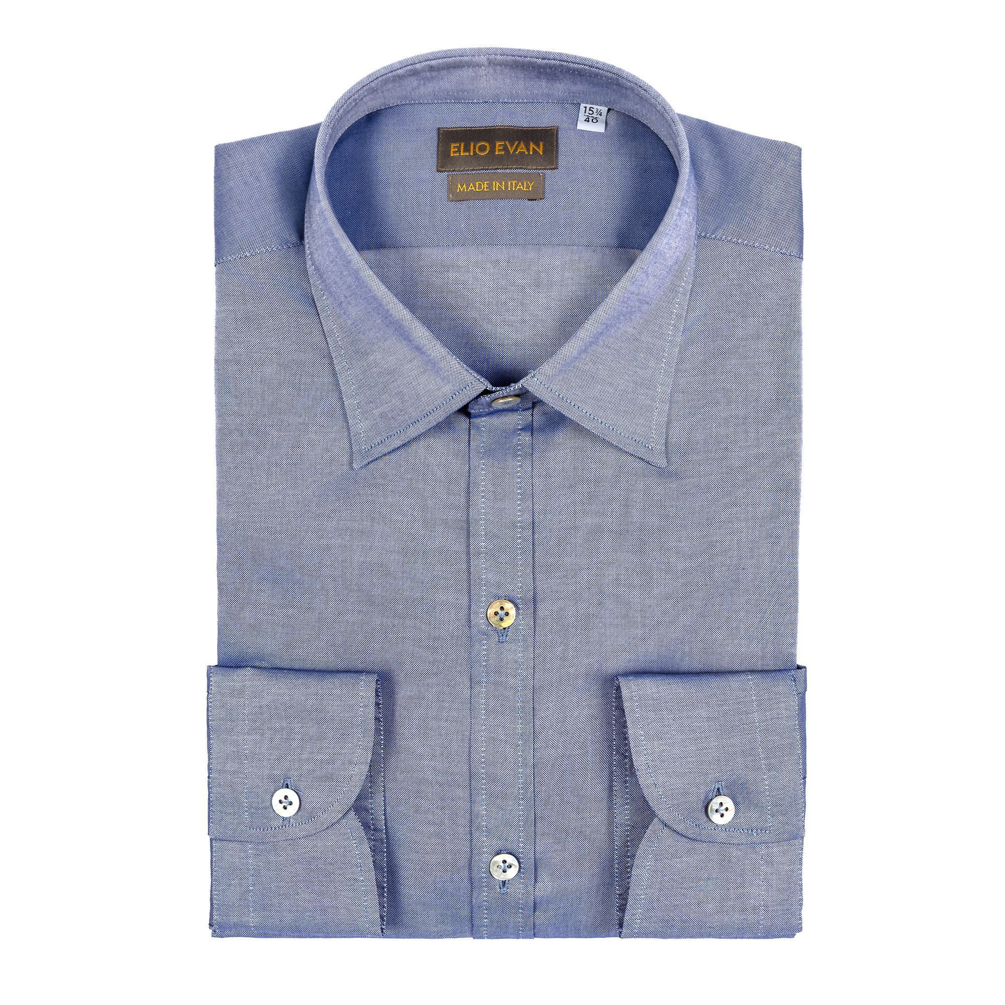 Un’icona dell’eleganza maschile italiana, la camicia Oxford azzurra Elio Evan coniuga precisione sartoriale e raffinatezza quotidiana. Realizzata in puro cotone a filo lungo con una leggera lucentezza iridescente, offre comfort e struttura naturale. Il colletto a punte con stecche estraibili, i polsini arrotondati e i bottoni in madreperla esprimono l’essenza di una camicia italiana moderna. Perfetta con un abito o indossata da sola, questa camicia uomo Oxford rappresenta l’equilibrio tra lusso discreto e versatilità contemporanea. Tessuto e confezione Made in Italy.
