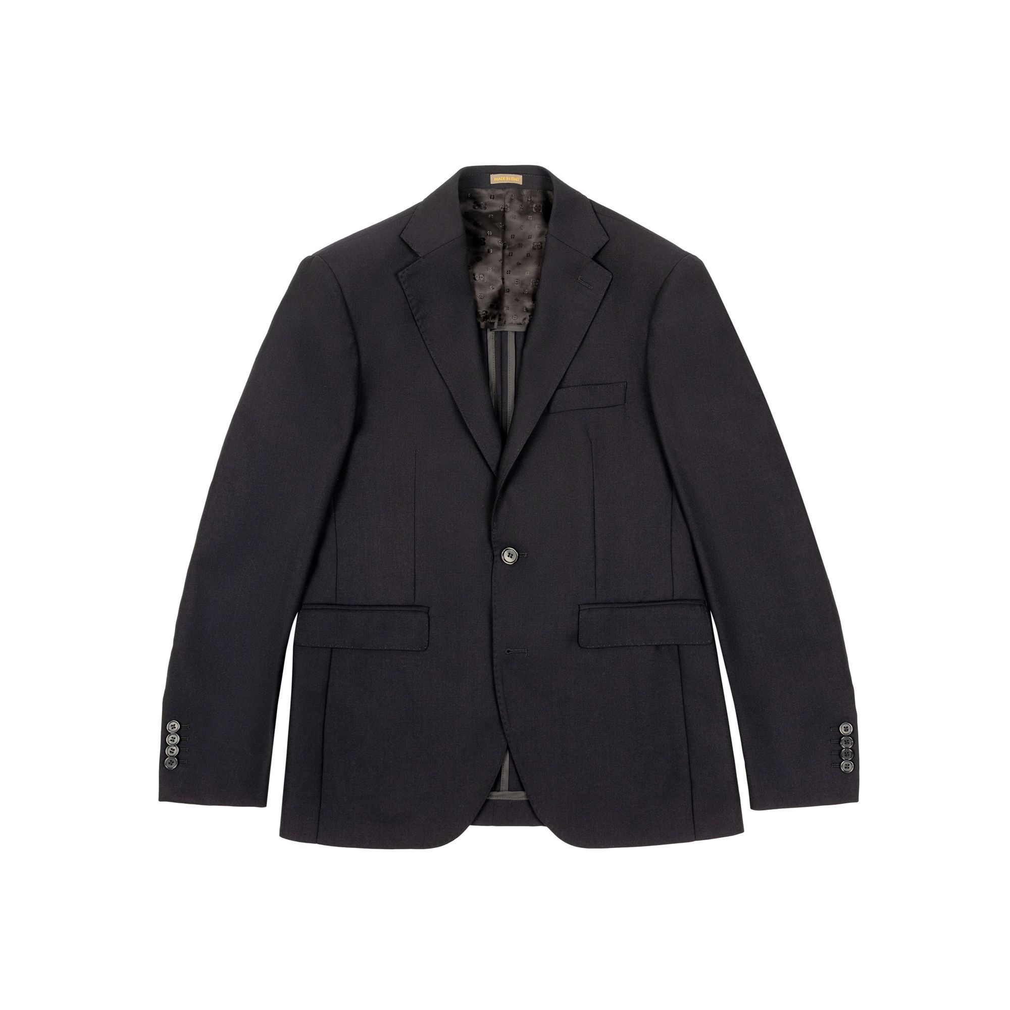 Elegante giacca uomo in lana vergine crepe blu navy, con superficie leggermente spazzolata che aggiunge profondità e morbidezza. Il modello Vomero G firmato Elio Evan riflette la sartorialità italiana più autentica, con spalle naturali, fodera semifoderata e revers a dente impunturati AMF. Una giacca elegante da uomo che combina comfort e struttura, ideale per look formali e casual raffinati.