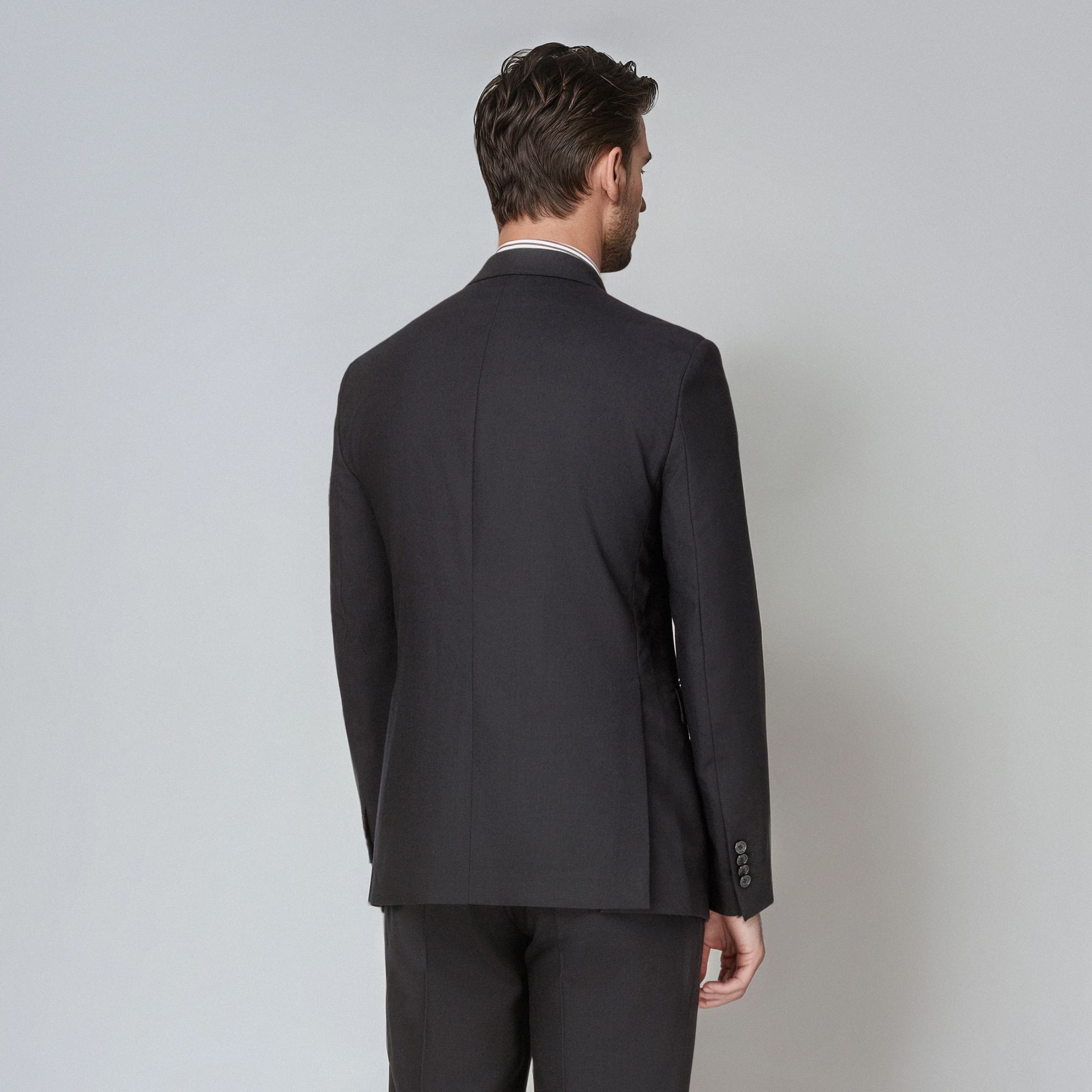 Elegante giacca uomo nera in lana vergine crepe, con superficie spazzolata che valorizza la profondità del tessuto. Il modello Vomero G firmato Elio Evan offre spalle naturali, revers AMF impunturati e fodera semifoderata per un comfort contemporaneo. Perfetta sia come giacca spezzata che coordinata, disponibile anche in grigio antracite e blu navy.