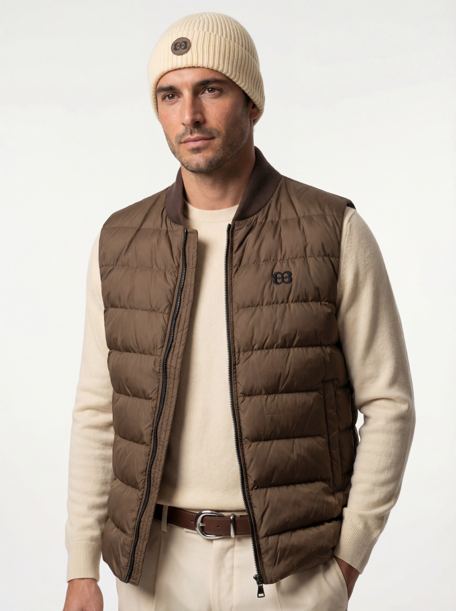 Progettato nell’atelier Elio Evan, questo gilet imbottito unisce protezione tecnica ed eleganza essenziale. Il tessuto Limonta antivento e idrorepellente accompagna la quotidianità con discrezione, ενώ η imbottitura in piuma 90/10 assicura calore leggero senza appesantire la silhouette. Il collo in maglia rib dona comfort naturale e struttura, rendendo il capo ideale per il layering sopra maglieria, capi strutturati o look urbani contemporanei.