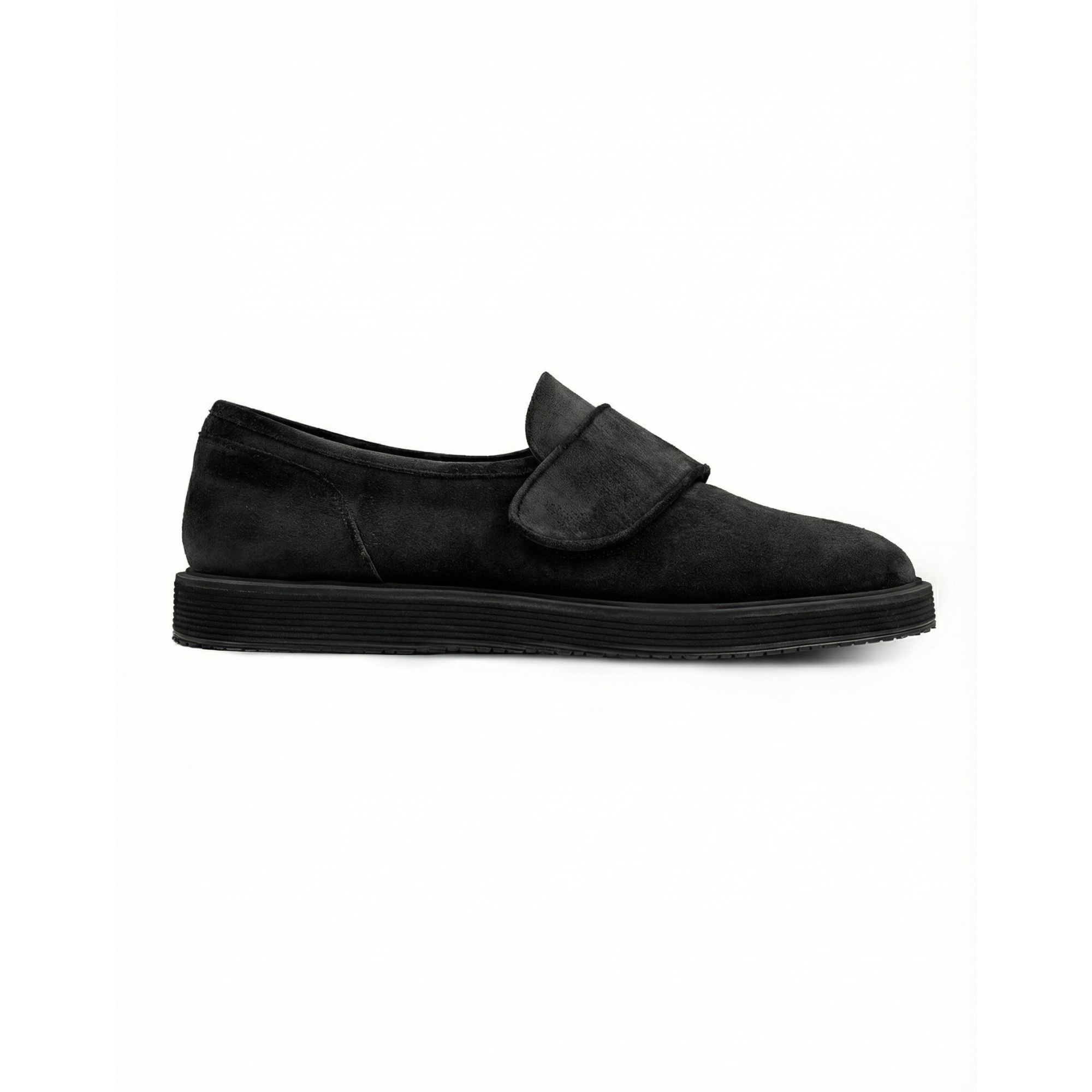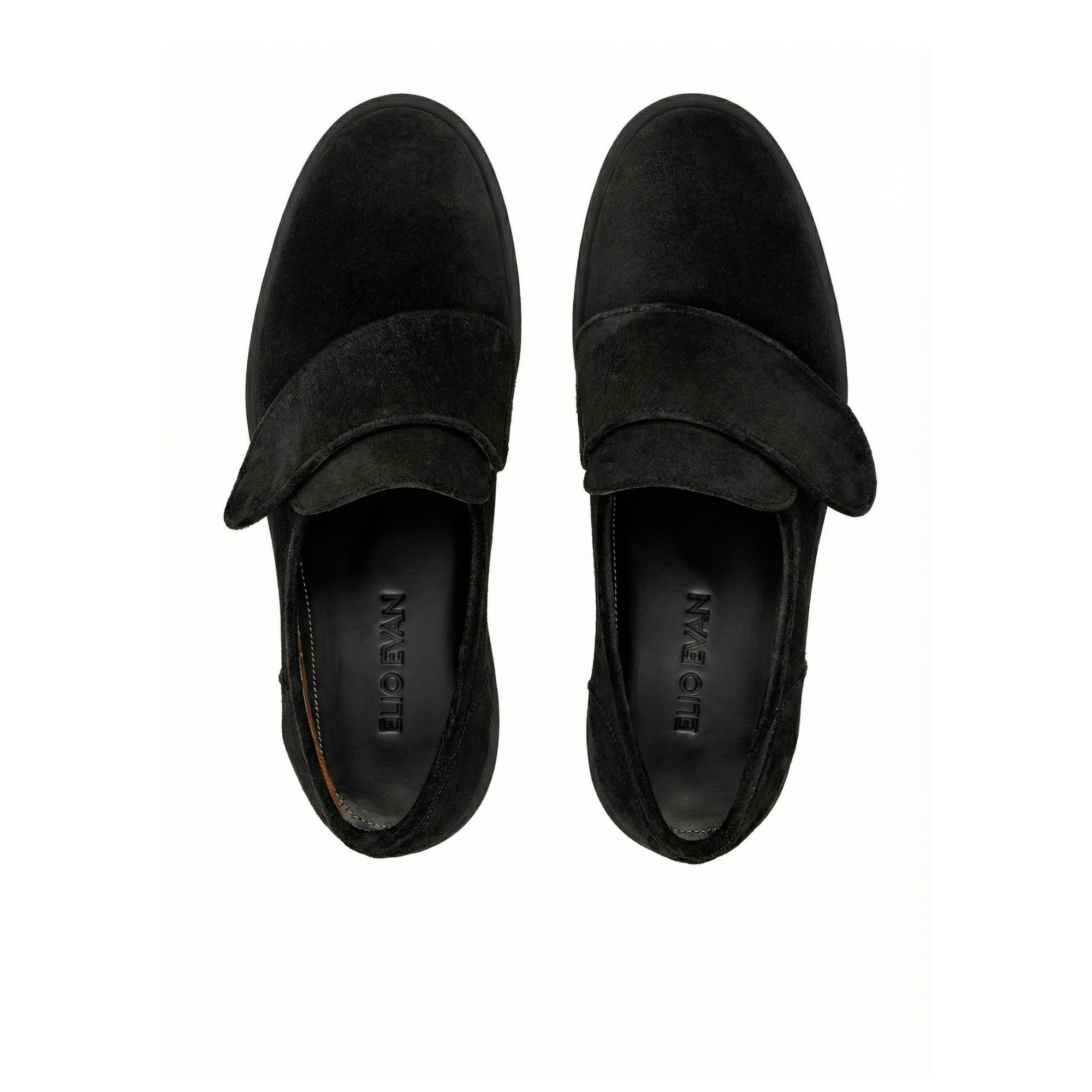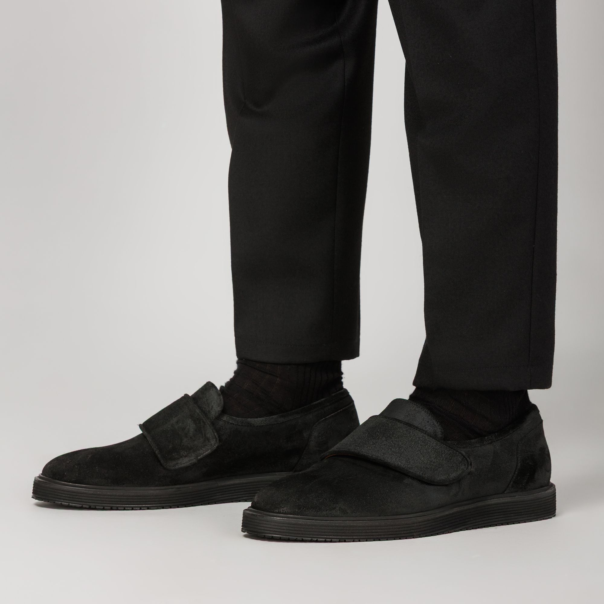 Pulito e minimale, il Monza single monk nero esprime la chiarezza sartoriale della maison. La chiusura a fascia con fibbia libera il collo del piede per una linea continua, evidenziando la curva della forma. L’intersuola micro attenua l’impatto; la suola Vibram® garantisce aderenza e transizione fluida del passo. All’interno, la fodera in pelle pieno fiore gestisce l’umidità e si modella delicatamente al piede per comfort prolungato. Dal suit soft-constructed agli outfit casual raffinati, è una scelta versatile per chi preferisce l’eleganza discreta. Design Elio Evan Studio, produzione italiana.